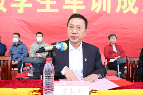 On October 5th, the meeting on the military training achievements of freshmen was held in the track-and-field venue of the main campus. Luo Yiping and Zhang Xiaogang, members of the HIE Party Committee and vice presidents of HIE, attended the meeting. The heads of relevant departments of the school, presidents of various colleges, secretaries and deputy secretaries of grass-roots party committees, all instructors of military training, head teachers and counselors of freshmen, and freshmen of 2022 enrollment also presented the meeting. The meeting was presided over by Luo Yiping.