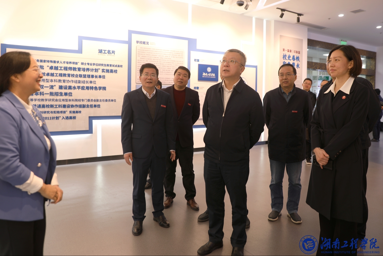 Ren Youqun and his colleagues also visited the Exhibition Hall of our school. Guo Jianguo, member of the Education Working Committee of Hunan Provincial Party Committee, member of the Party Group of Education Department and Zhou Yanxi, deputy mayor of Xiangtan Municipal People's Government, accompanied the visit.
