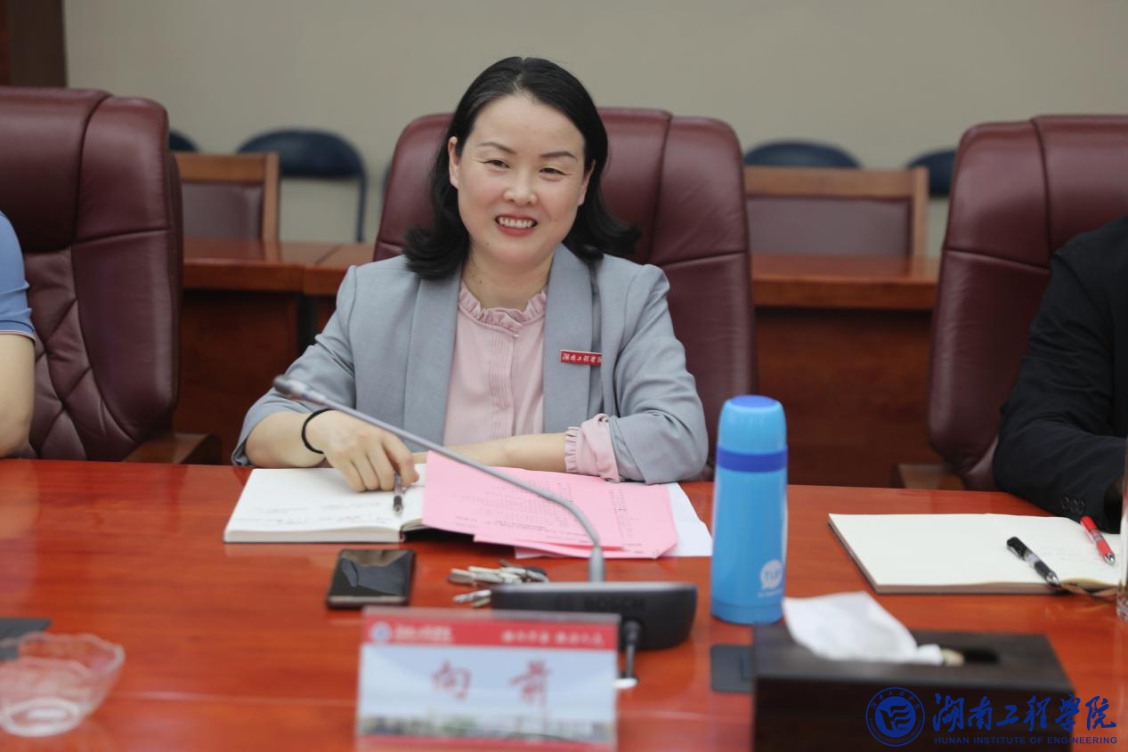 湘潭市人大民侨外委主任委员何红玲代表调研组说明了此行调研的目的。如何优化湘潭市创新创业环境、如何更好吸引留学归国人员来潭创业,调研组听取了beat365教师代表的意见和建议。
