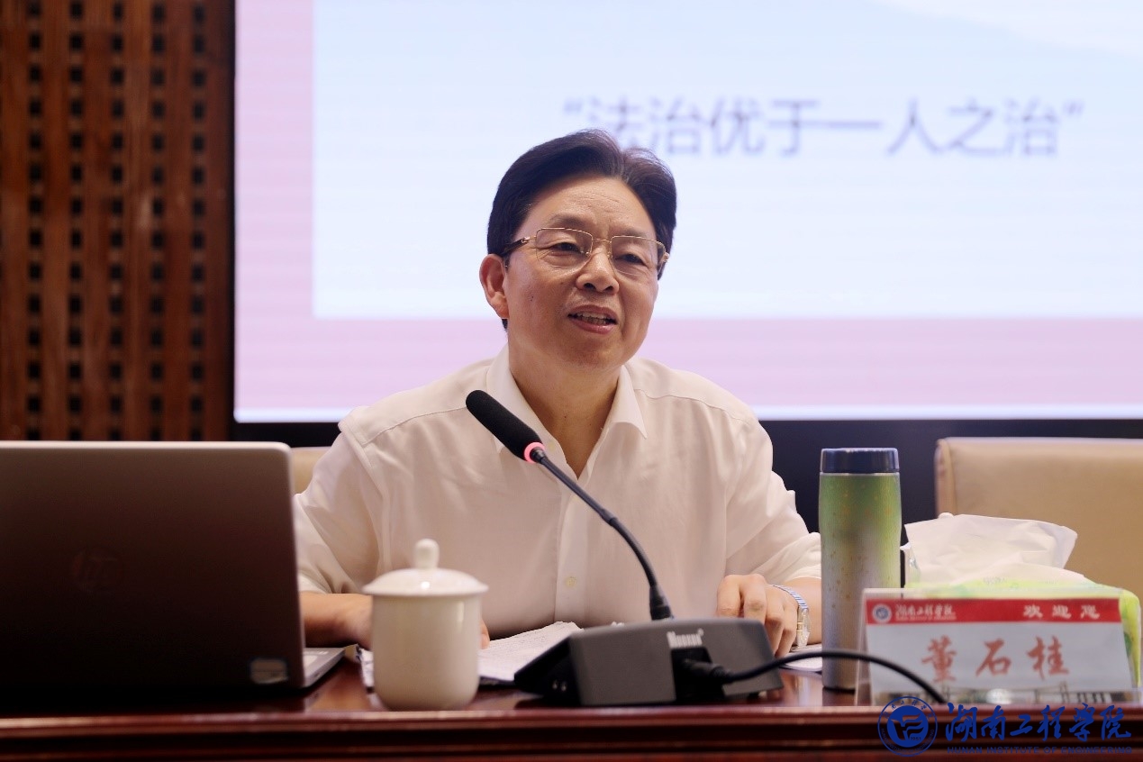 黄昕表示,董组长的报告旁征博引,用生动的语言和鲜活的事例,为参学人员深入浅出地诠释了“修身守正”的深刻内涵。报告从五个维度讲解了修身守正、行稳致远的五“律”方法。报告既有知识广度又有理论深度,既有严格纪律的力度又有推心置腹的温度,给全体参学人员带来了一场思想盛宴与文化大餐。黄昕要求,学校全体党员干部要勇争优秀、力求卓越,在工作与生活中,科学把握规律、严格遵守法律、主动服从纪律、自觉接受他律、不断加强自律,以实际行动推动“135工程”全面实施,为把学校全面建成特色鲜明、贡献突出的一流工程应用型地方大学而努力奋斗!