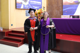 随后,UHI珀斯校区副校长Veronica Lynch博士依次向获得英方学士学位的同学,行苏格兰毕业庆典“Doff”礼。两校领导颁授UHI学位证书,并为其中获得UHI学士学位优秀等级的20位毕业生颁发奖杯。