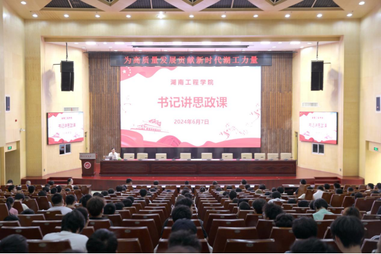 为贯彻落实习近平总书记对学校思政课建设的重要指示和新时代学校思政课建设推进会精神,6月7日上午,校党委书记黄昕以《为高质量发展贡献新时代湖工力量》为题,在一报告厅为电气与信息工程学院、材料与化工学院、信息科学与工程学院和设计艺术学院近400名学生上了一堂有高度、有深度、有温度的思政大课。