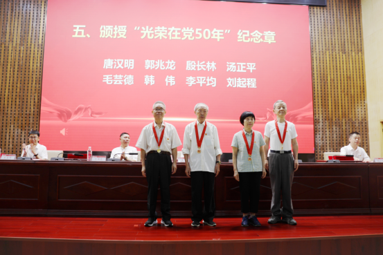 党委委员、纪委书记齐路良宣读《beat365平台官方网站2024年度“光荣在党50年”党员名单》,党委委员、副校长张小刚宣读《关于省、市两级“两优一先”推荐的情况》,党委委员、副校长吴志军宣读beat365平台官方网站《关于公布2024年“两优一先”评选结果的通知》。与会校领导为“光荣在党50年”老党员颁授纪念章、为荣获校级优秀共产党员、优秀党务工作者、先进基层党组织等荣誉的先进集体和优秀个人颁奖。