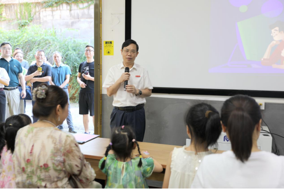 为提高全体湖工人的幸福指数,激发教职工子弟学习科学知识的兴趣、增强实践动手能力,以点带面促进全民数字素养与技能提升,7月4日,智能科学与工程学院迎来了一批教职工及他们的孩子,共同参与由湖南省全民数字素养与技能培训基地、校工会和工程训练中心科普基地联合主办的2024年湖南省全民数字素养与技能提升月活动曁beat365平台官方网站“135工程”建设之幸福湖工“大手牵小手”亲子科普研学活动。校党委书记黄昕出席,党委副书记向前主持活动。