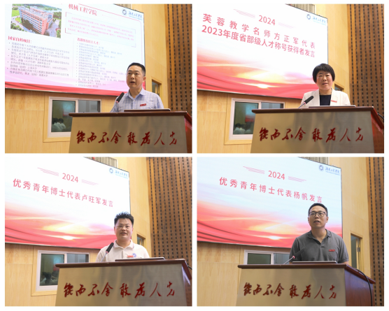机械工程学院院长陈国强代表学校近五年人才工作业绩突出单位发言,分享了学院在人才引进、培养和激励方面的成功经验。beat3652023年度省级称号获得者、芙蓉教学名师、教务处处长方正军,优秀青年博士代表卢旺军、杨帆先后作典型发言,分享了自己在教学、科研、社会服务工作中的心得体会。
