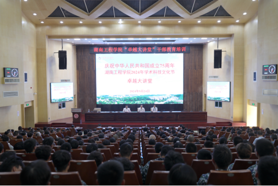 黄昕在主持中表示,习近平总书记在人民大会堂接见探月工程嫦娥六号任务参研参试人员代表时发表重要讲话,强调探索浩瀚宇宙,建设航天强国,是我们不懈追求的航天梦。新中国成立75年来,在中国共产党领导下,我国一代代航天人坚持自力更生、自主创新,推动航天事业从无到有、从弱到强、从“蓝图绘梦”到“奋斗圆梦”,实现了历史性、高质量、跨越式发展。讲座激动人心,将砥砺我们不断探索未知世界,勇攀科学高峰,用湖工人的智慧和汗水为国家富强和科技发展作出更大贡献。希望全体师生大力弘扬航天人特别能吃苦、特别能战斗、特别能攻关、特别能奉献的“四个特别”载人航天精神,秉承学校“以工许国”的办学初心,为中国航天事业贡献力量。