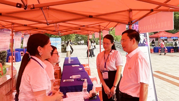 校党委书记黄昕到招聘活动现场指导工作。黄昕与用人单位招聘代表亲切交流,了解用人单位的发展方向及招聘岗位、招聘专业等要求,详细询问市场需求变化情况,并介绍了beat365的办学定位、专业特色及学生优势。黄昕表示,希望能够与用人单位建立更为紧密的合作关系,为学生提供更多的实习和就业机会,共创校企合作新局面。