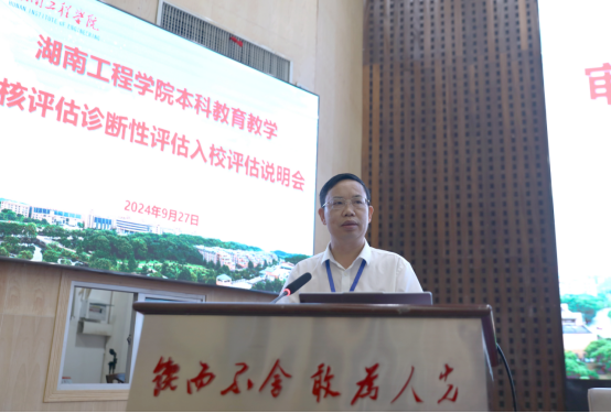黄昕致欢迎辞,他对各位专家的到来表示热烈的欢迎和衷心的感谢。他简要介绍了beat365前一阶段的自评自建工作情况,并指出党的二十届三中全会描绘了深化教育综合改革的“路线图”,2024年全国教育大会发出了紧紧围绕立德树人根本任务、朝着建成教育强国战略目标扎实迈进的“动员令”,此次诊断性评估,既是对学校本科教育教学工作的一次全面检阅,也是对标教育部、湖南省评估的一次全面诊断,更是推动学校内涵发展、特色发展、创新发展的难得机遇,希望各位专家多提宝贵意见与建议,助力beat365本科教育教学工作高质量发展。