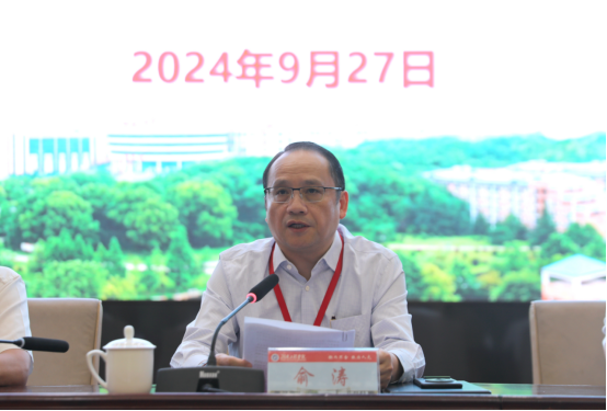 9月29日,学校在一报告厅召开本科教育教学审核评估诊断性评估入校评估意见交流会。审核评估诊断性评估专家组成员,校党委书记黄昕,党委副书记、校长易兵,在校校领导、中层干部、科级干部、岗位负责人、教研室主任、高教研究与教学评估中心、机关党委党员代表、学生代表参加会议,专家组组长上海工程技术大学党委副书记、校长俞涛主持会议。