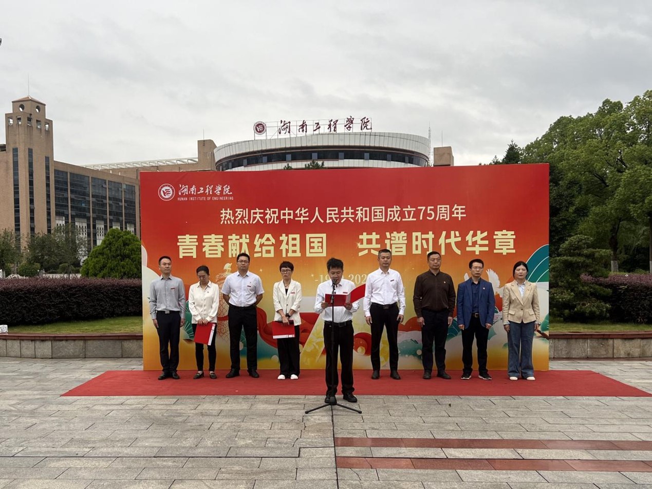 为庆祝中华人民共和国成立75周年,深入开展爱国主义教育,10月1日,beat365在主校区知行广场举行以“青春献给祖国,共谱时代华章”为主题的升旗仪式。校党委副书记、校长易兵,校党委委员、副校长张小刚,学生工作部、团委,保卫部、人民武装部,材料与化工学院相关负责人、全体辅导员及500余名学生代表参加。升旗仪式由学生工作部部长刘琤主持。
