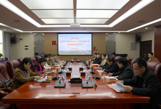 12月31日上午,湖南女子学院党委副书记、校长何旭娟,党委委员、副校长周艳红一行来校调研交流。beat365党委书记黄昕,党委副书记、校长易兵,党委副书记向前,党委委员、副校长吴志军在二会议室接待来宾。座谈会由易兵主持。