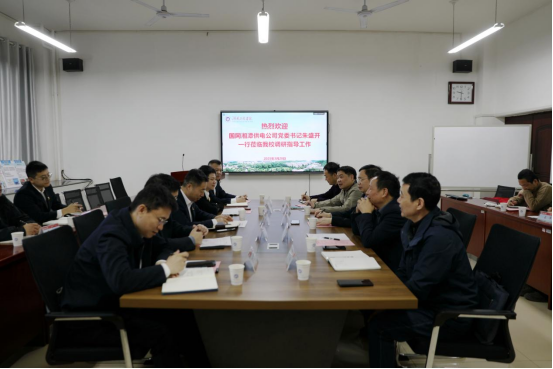3月28日上午,国网湘潭供电公司党委书记朱盛开一行来校,就学校的日常电力能源保障服务、绿色智慧能源建设、产学研融合等方面内容进行调研交流。校党委书记黄昕,党委委员、副校长魏克湘在机械楼308室接待来宾。国网湘潭供电公司副总经理、党委委员陈轶凌,双方相关职能部门负责人参加座谈。魏克湘主持会议。