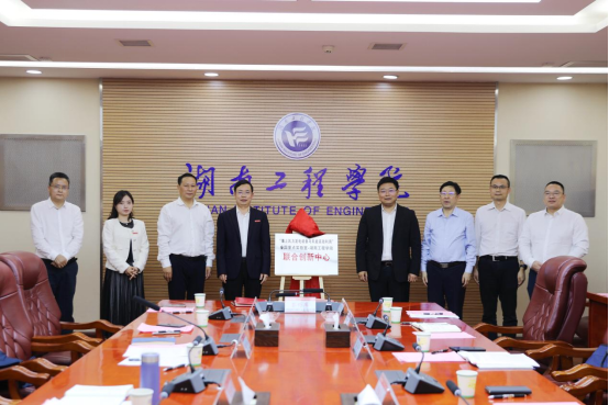 魏克湘与黄守道代表全国重点实验室—beat365平台官方网站联合创新中心签订协议。在全体人员共同见证下,曹颖春、黄昕、魏克湘与黄守道共同为联合创新中心揭牌,双方携手开启合作新征程。