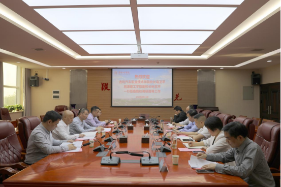 4月14日下午,湘潭理工学院副校长钟志平、吉利汽车职业技术学院校长马卫平一行来校调研交流。beat365党委书记黄昕及相关部门负责人参会。