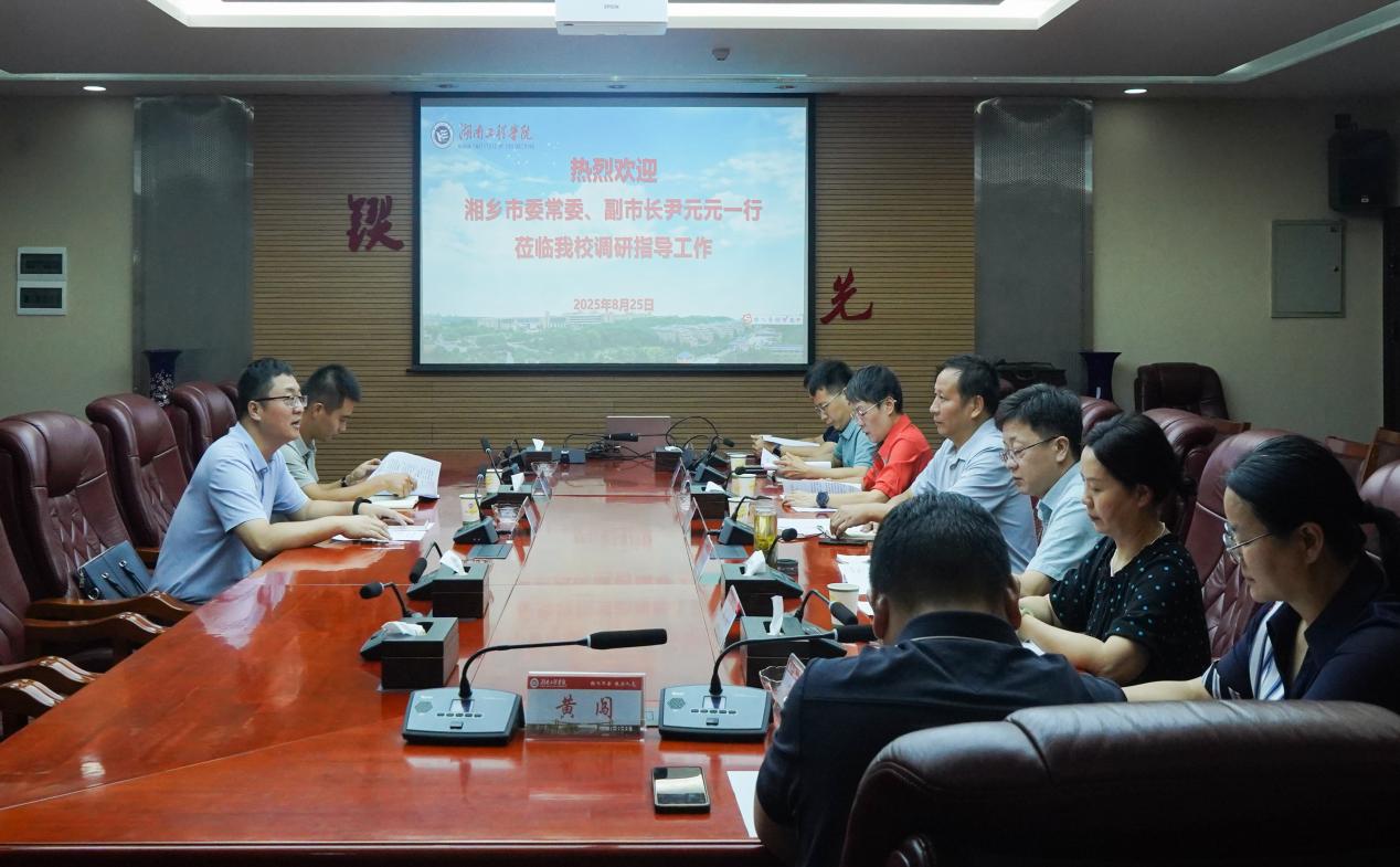 8月25日下午,湘乡市委常委、副市长尹元元一行来beat365调研。党委委员、副校长魏克湘在二会议室接待来宾。魏克湘主持会议。