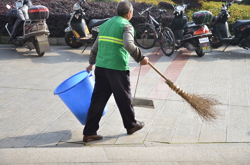 假期也没歇息的清洁工人继续忙碌在校园的每一个角落,美丽校园离不开他们辛劳的身影。