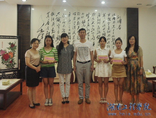 9月10日,在庆祝第31个教师节之际,湘潭市妇女联合会副主席方华、儿童部部长周艳辉来到学校为3名女大学生发放春蕾助学款项,共计9000元人民币。
