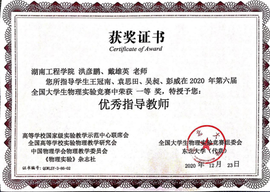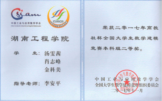 近5年来,学生在各类竞赛获省级以上奖励100余项,其中,全国大学生数学建模获得国家二等奖1项,省级一等奖5项;全国大学生物理实验竞赛获全国一等奖和二等奖各1项;“挑战杯”湖南大学生创业计划竞赛银奖2项铜奖5项。2020年参加美国大学生数学建模比赛获得H奖,实现历史性突破。2018年成功主办了湖南省第5届大学生物理竞赛,2018年和2019年连续两年分别承办了第35届和第36届中学生物理奥林匹克竞赛湖南赛区实验复赛。