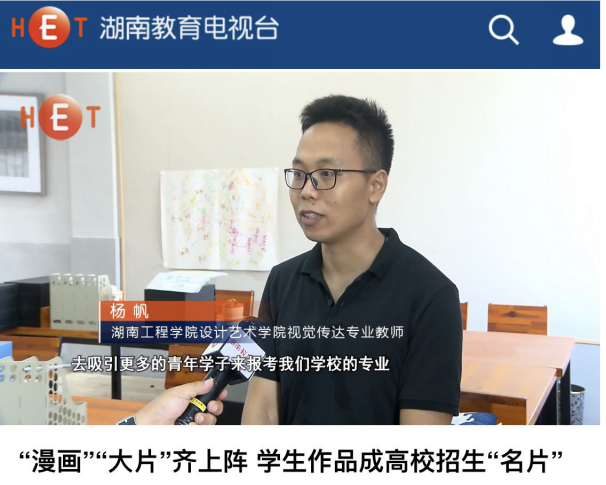 湖南教育电视台报道视觉传达设计专业制作的以“漫画”“大片”为亮点的招生宣传