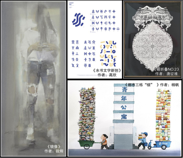 学院秉承着应用型人才培养定位,实践育人,协同育人,培养服务地方、对接产业的高素质设计人才。而高素质人才培养,必然与有高水平、有责任心的教师密不可分。“十三五”期间,每五年举办的第十三届全国美展学院老师入选了4件作品,其中杨帆博士的漫画作品《都市三栋“楼”》被选送北京(五年来全省仅有18件作品被选送北京),并先后在中国美术馆、广东美术馆、湖南美术馆进行公开展览。除此之外,参加各类国际性展览、赛事也获奖颇丰。2017年王彬老师作品《苗族银饰》 获第10届国际民俗摄影“人类贡献奖”,2019年高欣老师《Virtual Social》入选荷兰Graphic Matters海报双年展、2020年王彬老师摄影作品被中国民族博物馆收藏,段辉老师艺术作品被湖南省美术馆收藏,唐征维老师艺术作品与成就被香港销量最高的英文报纸《南华早报》以及《上海日报》(英文版)报道等等。