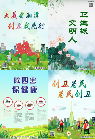 创卫为民,为民创卫,在2019年湘潭市创建国家卫生城市工作中,学院王兴业师生团队协助市创卫工作办宣传科创作分别以“大美看湘潭,创卫我先行”“卫生城,文明人”等四幅主题宣传海报,在全市大小街道社区张贴十几万张,产生了广泛的社会影响,对鼓舞市民同心合力参与“创卫”作出了积极贡献,也成为高校积极开展社会服务,主动融入地方、服务地方的生动实践案例。
