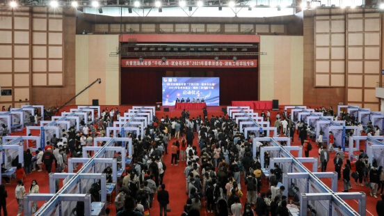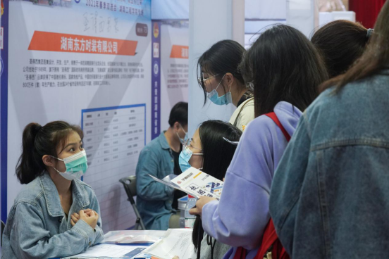 本次双选会分线上、线下进行。线下共设有110余个展位,招聘企业以湖南、广东为主,涉及纺织工程、机械电子、工程建设、新媒体、教育、管理等多个行业。同时,从5月18-5月30日,通过线上招聘平台面向全省应届毕业上开展线上招聘会。招聘单位涉及领域广、岗位需求多,为本届毕业生们提供了更多的就业机会。