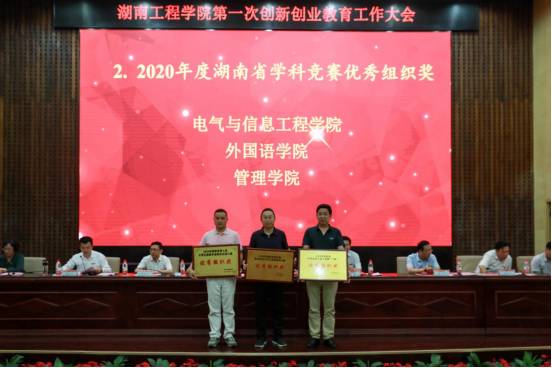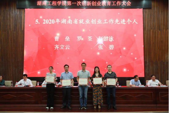 党委副书记彭立威宣读《关于表彰2018-2020年度就业创业工作先进集体、先进个人的决定》《关于beat365平台官方网站2019-2020学年创新创业奖学金获奖情况的通报》表彰文件。与会领导为获奖单位和个人代表颁奖。
