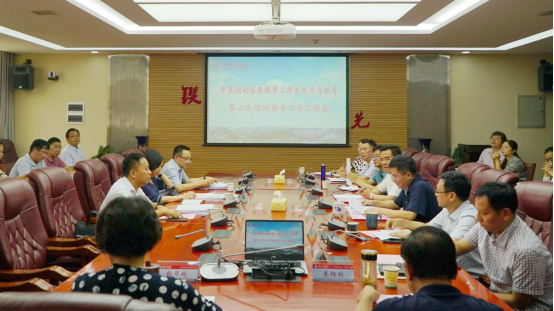 6月22日下午,中共湖南省委教育工委党史学习教育第五巡回指导组副组长、省委教育工委宣传部部长刘书华一行来beat365就党史学习教育开展情况进行第二次巡回指导。汇报会在电气楼311会议室召开,校党委书记陈岳堂,党委副书记、校长易兵,党委理论学习中心组成员、基层党组织书记参加。易兵主持汇报会。