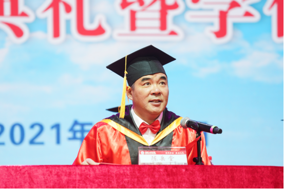 毕业典礼上,彭立威宣读《关于表彰2021届优秀毕业生的决定》。全体校领导为湖南省优秀毕业生代表颁奖。