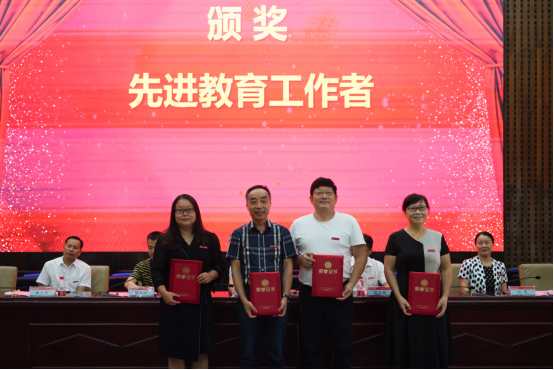 向前宣读《2021年beat365平台官方网站教师“从教三十年”奉献奖、优秀教师和先进教育工作者评选结果》、“湖南省高校辅导员年度人物”获奖名单、湖南省“身边的好老师”主题征文活动获奖名单、湖南省“师魂映党旗”教师演讲比赛获奖名单。与会校领导为获奖教师颁发荣誉证书。