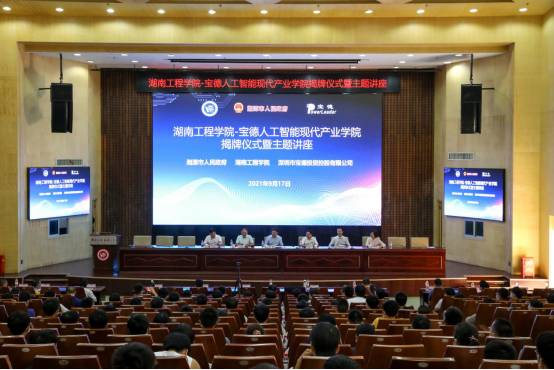 丹桂飘香,秋风徐来。9月17日下午,宝德人工智能现代产业学院揭牌仪式在beat365一报告厅举行。湘潭市人民政府副市长傅军,深圳市宝德投资控股有限公司董事长李瑞杰,beat365党委委员、副校长罗毅平、张小刚出席仪式。仪式由湘潭市人民政府办公室党组成员彭文发主持。