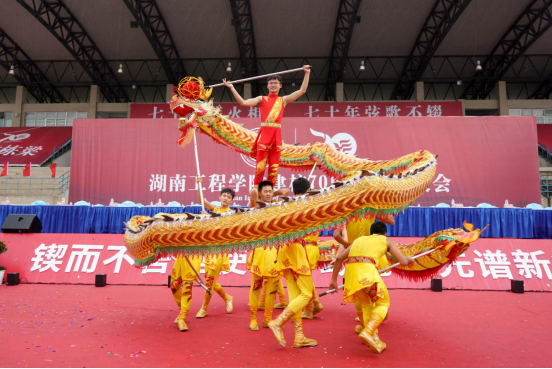 “祝福母校70华诞生日快乐!”在大会正式开始前,会场上滚动播放校友、师生祝福视频,点燃了大家的爱校热情。建校70周年专题宣传片《七秩·芳华》通过一幕幕丰富多彩的光影图像,再现学校攻坚克难、砥砺奋进的办学历程,让校友们追忆似水流年。全场合唱《湖工生日快乐》,将现场喜庆气氛推向高潮。湖南农业大学舞龙队表演《龙腾狮跃庆九州》为beat365带来了一份特别的生日礼物。许多兄弟院校、友好单位发来贺信,祝福beat365七秩征程,再创辉煌。