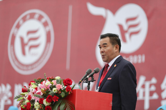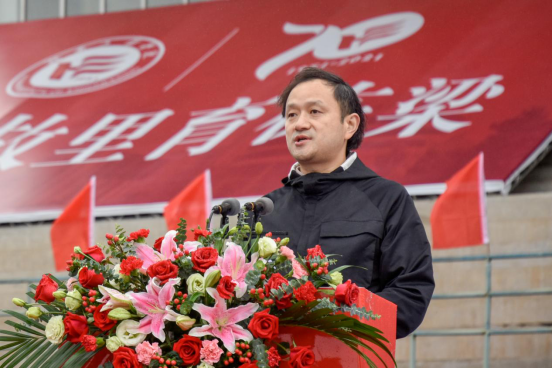 易兵简要回顾了学校建校70年来的发展历程和取得的成就。70年来,学校始终坚持党的全面领导,全面深化改革,以“双一流”建设和新工科建设为抓手,突出内涵建设和特色发展,全面推进大学治理体系和治理能力现代化,在人才培养、科学研究、社会服务、文化传承创新、国际交流等方面取得了丰硕的办学成果。易兵表示,党的领导是学校事业发展的根本保证,红色血脉是学校上下求索的力量源泉,“锲而不舍、敢为人先”是学校砥砺前行的精神坐标,学校将坚持立德树人之根本、坚定应用型办学之道路、坚守教育报国之初心,为奋力建设现代化新湖南、新湘潭作出新的更大的湖工贡献。