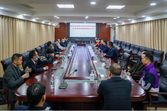 在产业园区考察结束后,考察组一行在湘乡市政府会议室与湘乡市相关领导进行交流座谈,谢志宏详细介绍了湘乡市的系列招商引资政策和政产学研合作的需求,谢岸烨表示,希望加强政、校、企的合作交流,与湖工的校友企业家实现共赢发展。胡建时向参加本次考察的湖工校友企业家发出了诚挚的邀请,欢迎大家来湘乡投资兴业,共谋发展。企业家代表先后发言,表达了强烈的开展产学研合作意愿。