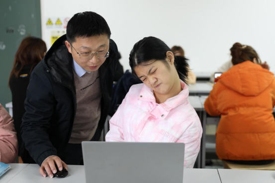 老师指导沈群进行课程实验