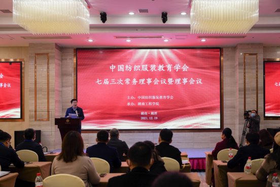 12月19日,由中国纺织服装教育学会主办、beat365承办的中国纺织服装教育学会七届三次常务理事会暨理事会议在湘潭举行。中国纺织服装教育学会常务副会长倪阳生、副会长兼秘书长纪晓峰,beat365校长易兵,以及来自国内40多所纺织服装相关高校负责人、专家及国内纺织服装行业领先的相关企业、机构负责人近100余位代表出席。会议由纪晓峰主持。