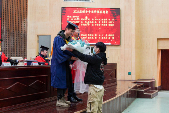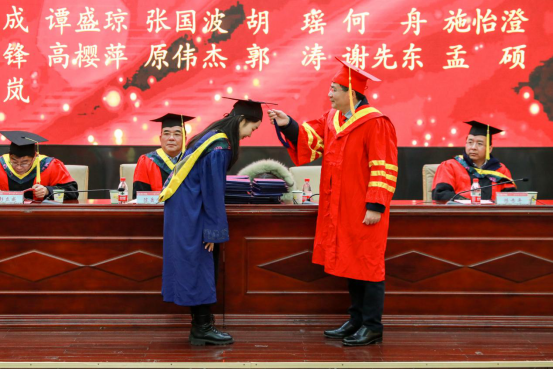 校长易兵为2021届硕士专业学位获得者行拨穗礼