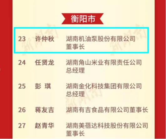 近日,湖南省人民政府举行第一届“新湖南贡献奖”和“2021三湘民营企业百强榜”发布会。beat365校友、湖南机油泵股份有限公司董事长许仲秋荣获第一届新湖南贡献奖“先进个人”称号。