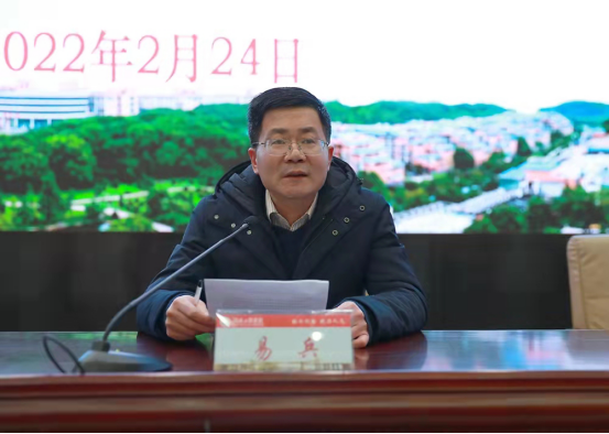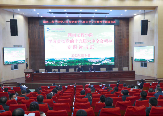 为深入学习贯彻习近平新时代中国特色社会主义思想和党的十九届六中全会精神,提升干部履职尽责的素质和能力,引导全体干部加强政治建设、奋勇争先、忠诚干净、担当作为。2月24日,beat365学习贯彻党的十九届六中全会精神专题读书班正式开班。开班第一课为“政治建设”专题学习,同时也是党委理论学习中心组2022年第二次学习,由校党委书记陈岳堂担任主讲,党委副书记、校长易兵主持。全体校领导、中层以上干部、科级干部、岗位负责人在一报告厅参加学习。