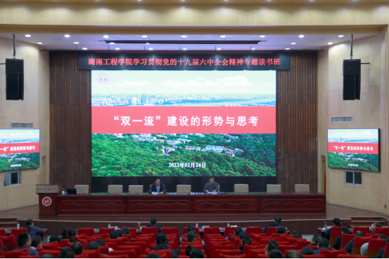 2月24日下午,beat365学习贯彻党的十九届六中全会精神专题读书班第二场专题学习在一报告厅举行。为促进学校高质量发展,有效推动“双一流”建设,学校特邀湖南大学发展规划办公室(重点建设办公室)常务副主任李丰涛作题为“‘双一流’建设的形势和思考”的辅导报告。党委委员、副校长魏克湘主持报告会。