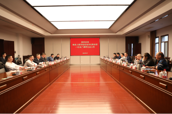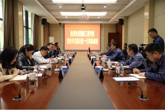 为贯彻落实党中央、国务院关于高校毕业生就业工作的决策部署,进一步深化校企合作,4月21日,党委书记陈岳堂,党委委员、副校长魏克湘一行先后到湖南华菱湘潭钢铁有限公司(以下简称“湘钢”)、江麓机电集团有限公司(以下简称“江麓集团”)走访调研,与湘钢党委副书记张志钢,江麓集团党委书记、董事长黄帅丹进行深入交流。