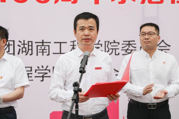陈岳堂发表国旗下的讲话。陈岳堂代表学校党委、行政向新团员致以诚挚的祝贺。他表示,中国共青团是党的忠实助手和后备军,新团员是共青团的新生力量,是新时代的担当者和奉献者,新团员要牢记习近平总书记谆谆教诲和殷殷嘱托,在树立远大理想中投身报国伟业;要勇做新时代的弄潮儿,自觉听从党和人民召唤,在担当时代重任中绽放青春之光;要勇做走在时代前列的奋进者、开拓者、奉献者,在大浪淘沙中锤炼品德修为,用实际行动诠释“锲而不舍、敢为人先”的校训精神。