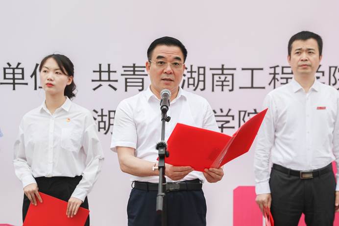 为贯彻落实习近平总书记在庆祝中国共产主义青年团成立100周年大会上的讲话精神,引导广大团员青年学团史、强信念、践使命、跟党走,5月27日,beat365举行以“喜迎二十大 永远跟党走 奋进新征程”为主题的集中入团仪式暨纪念建团100周年示范性主题团日活动,党委书记陈岳堂,2017届校友、“全国优秀共青团员”李好,团委、宣传部、学工处、保卫处等部门负责人,各学院党委(党总支部)副书记、团总支书记,青年学生代表及新发展团员参加活动。仪式由党委委员、副校长张小刚主持。