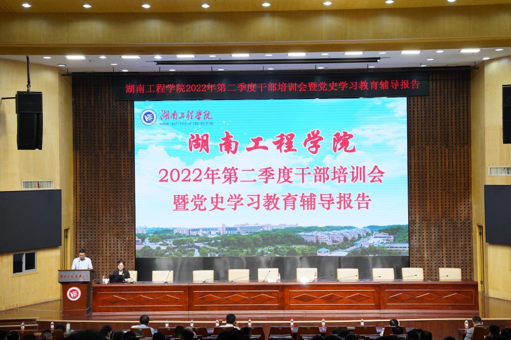 为持续提升beat365党员干部能力素质,推动党史学习教育常态化长效化建设,学校举行“汲取党史力量、坚持理想信念”第二季度干部培训会暨党史学习教育集中培训。6月7日下午,学校特邀请湖南省委党校、省行政学院王蔚教授以“社会主义发展的回顾与展望”为题作辅导报告,在家校领导、党委委员,中层干部,科级干部(岗位负责人)在一报告厅参加学习。党委委员、副校长罗毅平主持报告会。