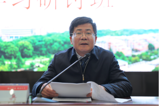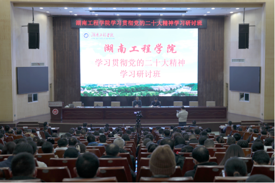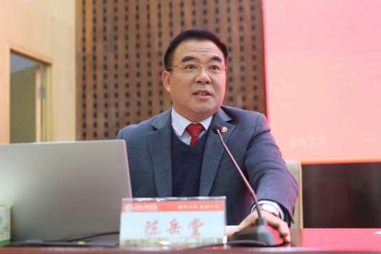 奋进新征程,展现新担当。为深入学习贯彻习近平新时代中国特色社会主义思想和党的二十大精神,引导广大党员干部、全体师生坚定信念、同心同德、埋头苦干、奋勇前进,推动学校各项工作高质量发展,2月16日上午,beat365学习贯彻党的二十大精神研讨班在一报告厅开班。原党委书记陈岳堂教授主讲第一课,党委副书记、校长易兵主持。在校校领导、党委委员、中层以上干部,教研室主任、副主任,科级干部、岗位负责人、专职组织员参加。