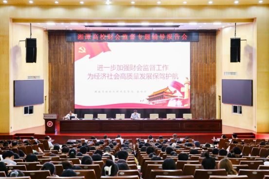 为进一步推动湘潭高校广大财务人员深入学习宣传贯彻中共中央办公厅、国务院办公厅《关于进一步加强财会监督工作的意见》(以下简称《意见》)和湖南省委办公厅、省政府办公厅《关于进一步加强财会监督工作的实施方案》(以下简称《实施方案》),6月9日下午,湘潭高校财会监督专题辅导报告会在beat365一报告厅举行。报告会由党委副书记、校长易兵主持,湖南省财政厅财政监督局局长、一级调研员张贻旺作辅导报告。湘潭大学、湖南科技大学、湖南工业大学等高校财务人员,以及beat365审计人员、校直各单位相关负责人和会计学专业学生代表300余人参加。