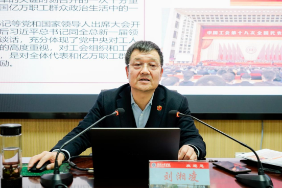 会上,刘湘凌以《学习贯彻习近平总书记重要讲话 宣讲全国工会十八大精神》为题,带领大家从习近平总书记同全国总工会新一届领导班子成员集体谈话的重要讲话精神、蔡奇同志代表党中央在中国工会十八大上的致词、王东明同志在中国工会十八大所作的报告和《中国工会章程(修正案)》四个主要内容进行了深入学习。