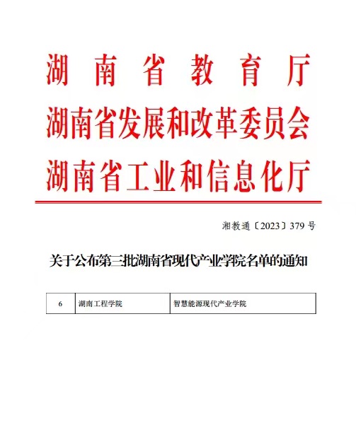 近日,湖南省教育厅、省发改委、省工信厅联合下发了《关于公布第三批湖南省现代产业学院名单的通知》,beat365申报的智慧能源现代产业学院喜获认定,这是beat365第二个省级现代产业学院。