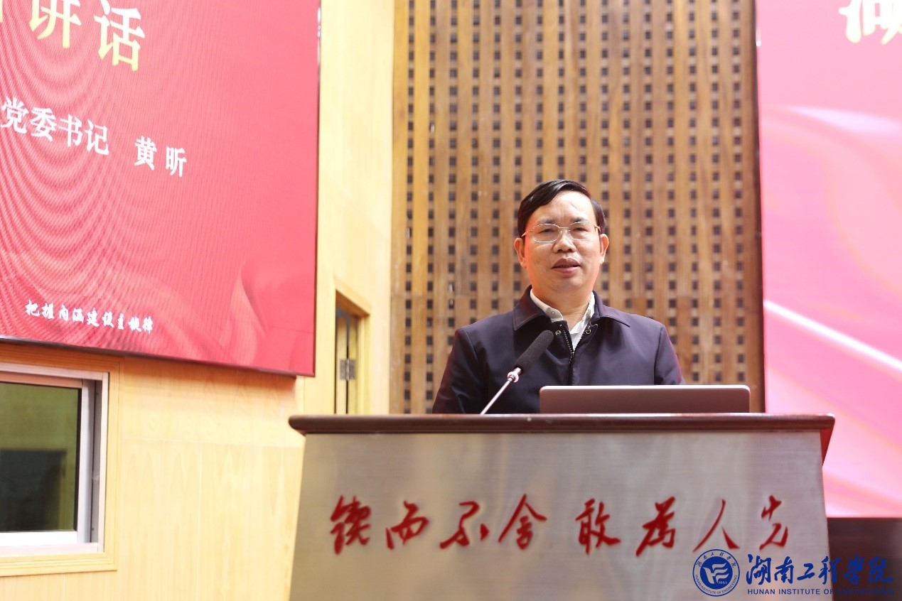 黄昕强调,我们要坚持以习近平新时代中国特色社会主义思想为指导,全面贯彻落实党的二十大精神,全面贯彻党的教育方针,落实立德树人根本任务,坚守“为党育人、为国育才”初心使命,大力弘扬教育家精神,聚焦“全面建成特色鲜明高水平工程应用型大学”发展目标,凝心聚力,攻坚克难,奋力书写学校事业高质量发展崭新篇章。