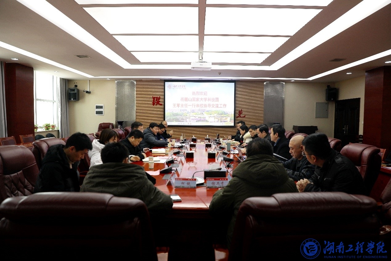1月23日上午,长沙留学人员创业园(长沙高新区创业服务中心)主任、岳麓山国家大学科技园管理办公室常务副主任王军,长沙高新区创业服务中心副主任姚峰,岳麓山国家大学科技园公司总经理吴勤一行来beat365交流洽谈合作事宜。校党委书记黄昕,校党委委员、副校长张小刚在二会议室接待来宾。双方就合作事宜展开深入交流。